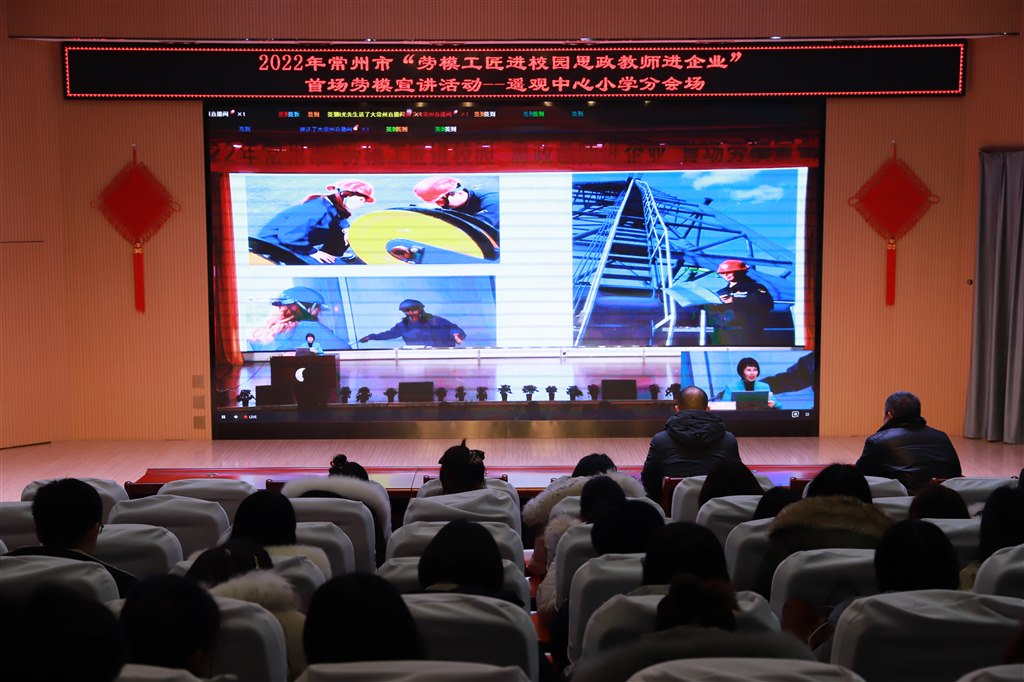 2022年2月18日下午,为了更深入地了解与学习劳动,感悟劳动精神,遥观中心小学全体教师观看了2022年常州市“劳模工匠进校园,思政教师进企业”首场劳模宣讲现场直播。