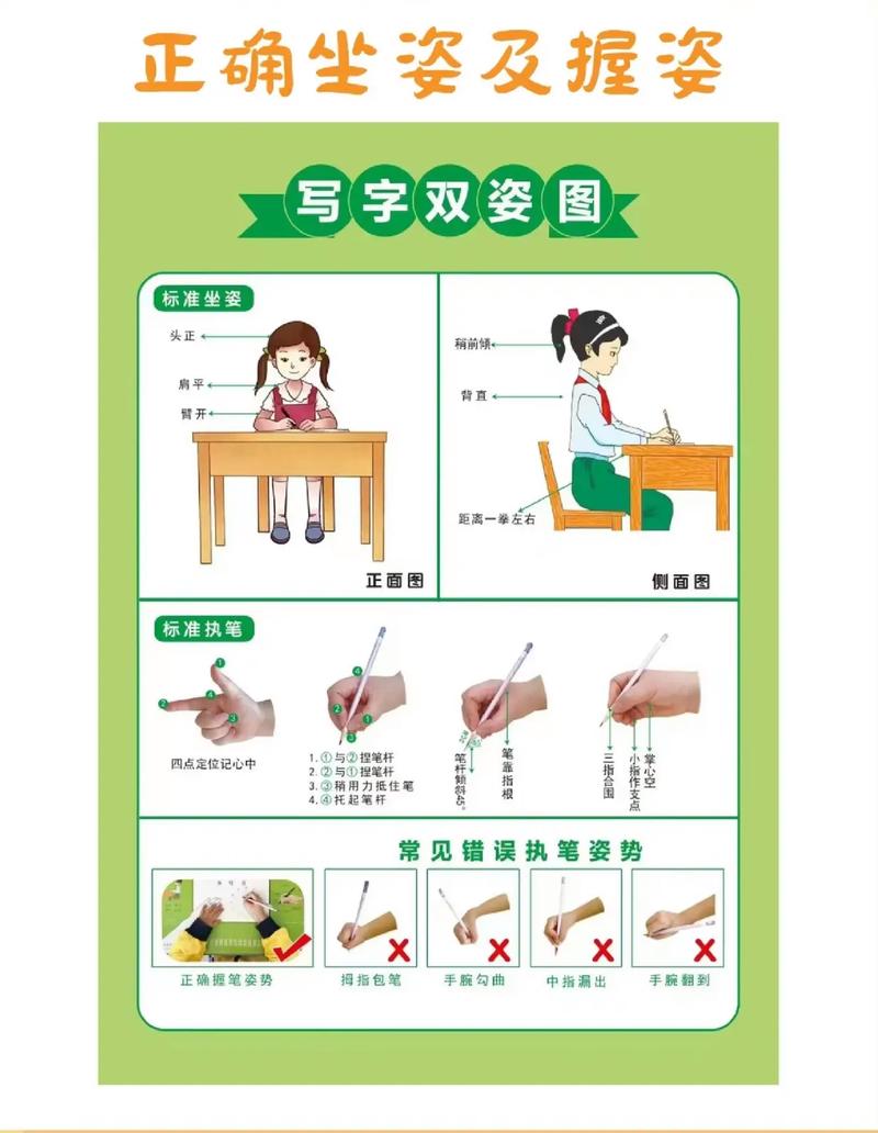 为帮助新生养成良好学习习惯,课程还专门设置“始于姿势,成于习惯”模块,详细讲解“正确握笔三步法”——“捏(食指拇指轻捏笔杆距笔尖 3 厘米处)、托(中指第一关节内侧托笔杆)、靠(无名指小指靠中指、手腕放平)”,并明确“笔杆倾斜靠食指根部” 的关键要点;同时规范“头正、肩平、臂开、背直、稍前倾”的标准坐姿,通过“四点定位”等易懂方法,让孩子掌握科学学习姿势,为长期学习打下基础。