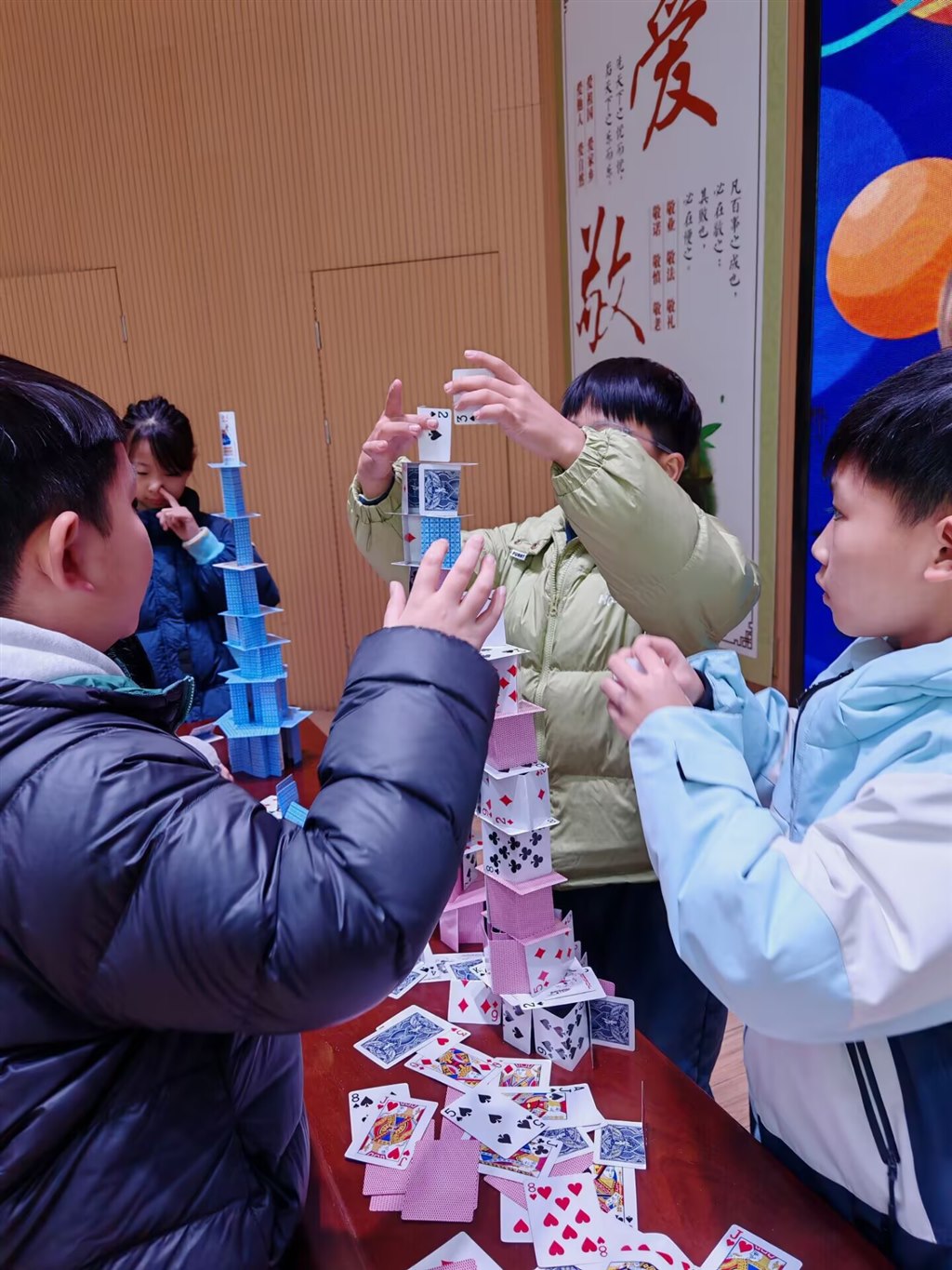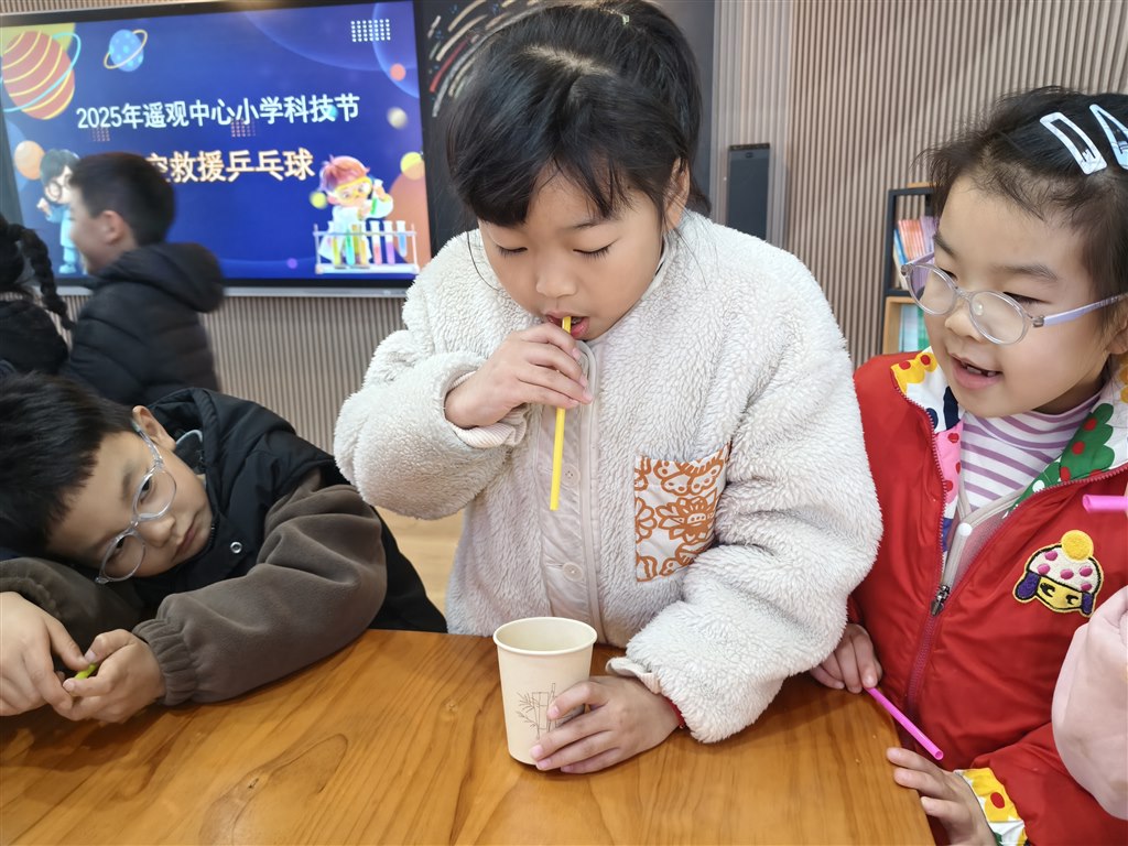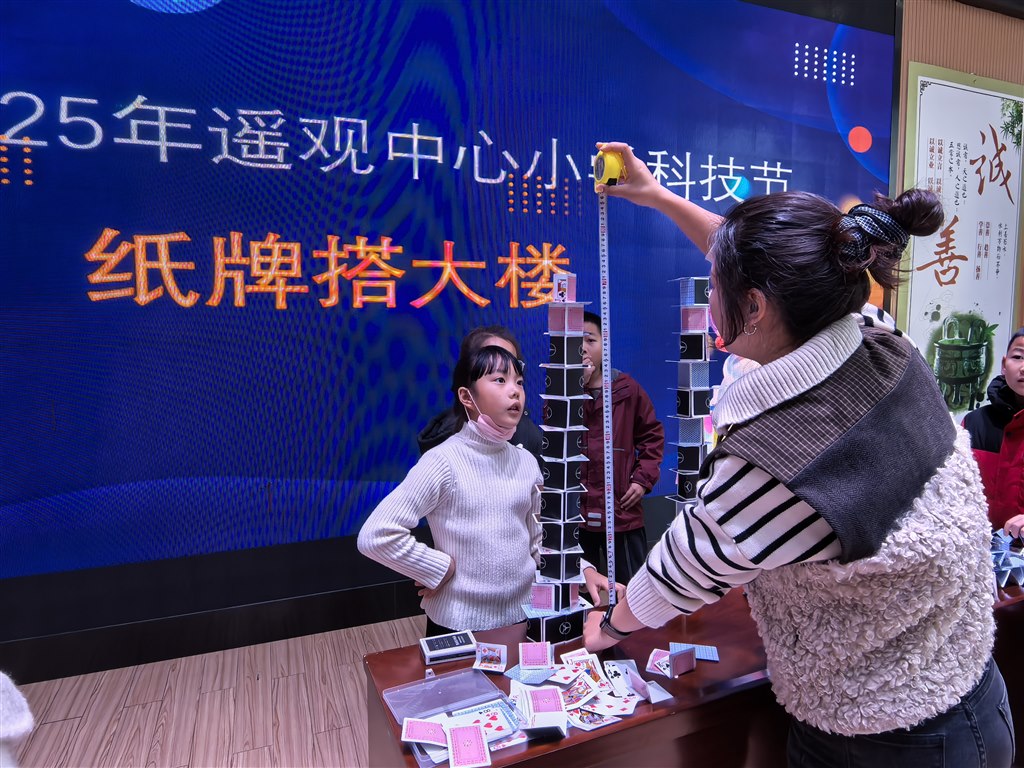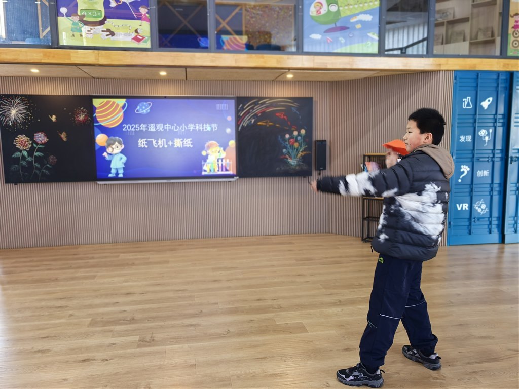 12月,科技节现场竞赛热血开赛!一、二年级“隔空救援乒乓球”,吸管吹气让小球飞舞;三、四年级“纸牌搭大楼”,30分钟内用折痕构筑稳固高塔;五、六年级“纸飞机+撕纸”,拼飞行时长也赛撕纸拼接长度。各班选手默契配合、脑洞大开,在实践中玩转科学原理。